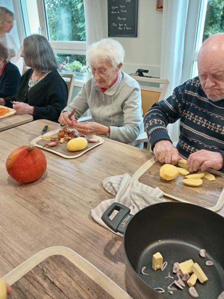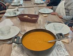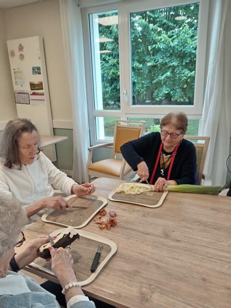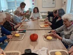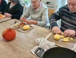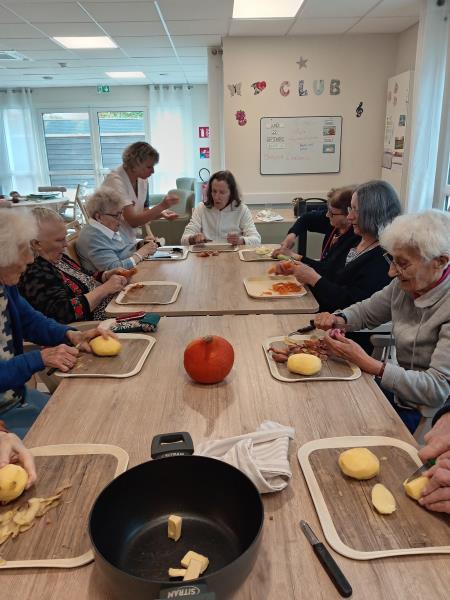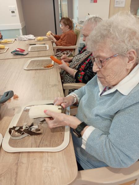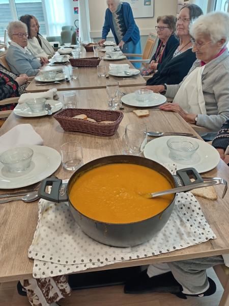 Nos deux soignantes ont profité de cette belle occasion pour en faire un atelier complet avec l'épluchage des légumes, le découpage, la mise en cuisson, le mixage et enfin...la dégustation !
