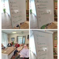 Publiée le 24/10/2022Fil d'actualité des activités de la semaine au "Club Mnémosyne". Acrostiches au programme de mercredi et jeu de mots ... Une nouveauté pour nos résidents inscrits au club. Dessins, coloriages, habillage d'un arbre selon son envie. Activité motricité, travail de l'&eacut [...] Lire la suite