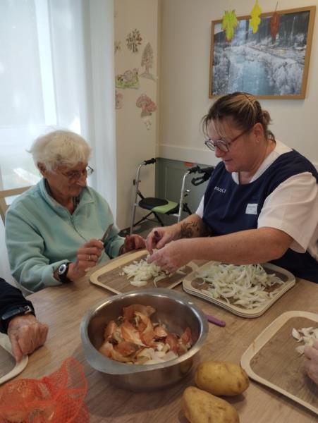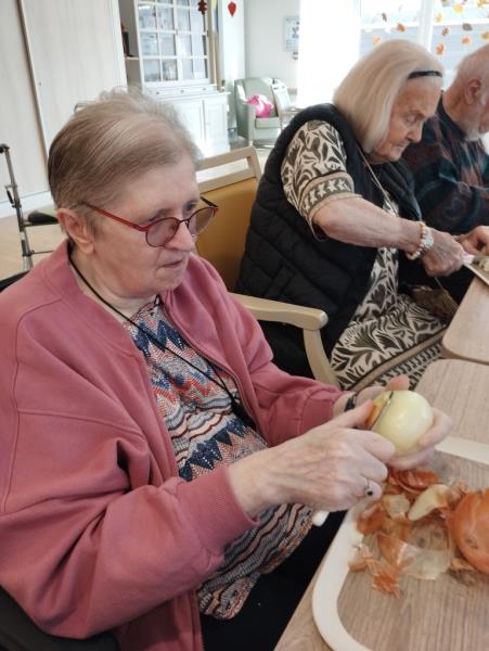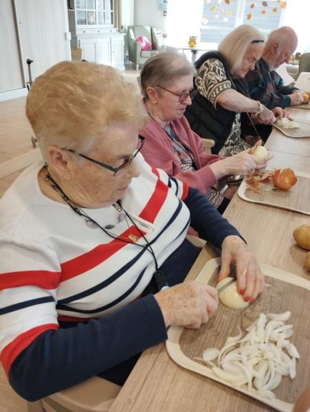 En cuisine, chacun a mis la main à la pâte pour préparer une délicieuse soupe à l’oignon maison, un vrai moment de partage et de convivialité. Des jeux autour du goût ont permis de stimuler les sens et de (re)découvrir de nouvelles saveurs telles que le lait de soja, du gingembre confit, du kombutcha à l'hibiscus (boisson fermentée à base de thé sucré), tandis que les ateliers cognitifs et les puzzles ont encouragé la concentration et la mémoire.