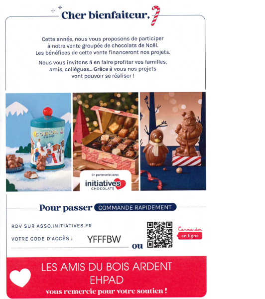 En achetant ces chocolats, vous aidez à financer des activités, des sorties ou des projets qui rendent le quotidien des résidents plus agréable. C’est un geste simple, mais qui peut faire une grande différence.
